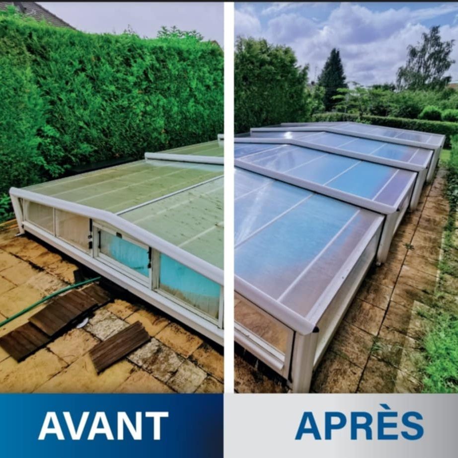 voici un petit avant après de changement de plaques polycarbonate transparentes ,sur un abris swim protec
